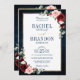 Mörk Blåblått burgundblått bröllop med blommigt på dubblan med elegant buquet av marinblått, royal blått, vitt, , burgundy, marsala ro och sage grönt eucalyptus löv och elegant guld glitter neutralt ram . Kontakta mig om du behöver hjälp med anpassning eller om du behöver någon annan produkt med den här designen.