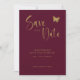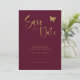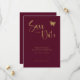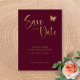 Burgundy & Guld Manus: Glitter Fjäril Bröllop Spara Datumet
