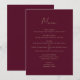 Den här elegantens moderna bröllop-meny har guld-färgad-text på en burgundisk bakgrund. Ord "Meny" visas i ett vackert handskriftsskript, med den återstående texten i sans serif-teckensnitt. Baksidan är massiv burgundi.