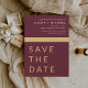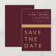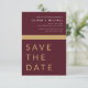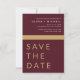 Bröllop Elegant Burgundy och Guld Spara datumkort. Spara datumkorten innehåller en modern handskriven kursiv skripttypografi som är elegant, enkel och modern till använda efter att du har minimalistisk enkel bröllopsdag firande.