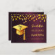 S Spara datumkortet för en studentfest. På framsidan: En grå övertoningsbakgrund, gyllene text. Mallar för namn och datum. Namn och texten: Spara datumet är skrivna med ett modernt handskript i stil. Tassel topper med faux guld. Tillbaka: Information om party. 1 lakan = 1 Spara datumet som skrivs ut kant till kant.