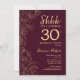 Burgundy Guld överraskande inbjudan till 30års födelsedag. Minimalistisk maronmodern feminin design har botaniska accenter och typiska typsnitt för manus. Enkel perfekt för inbjudan-kort i blommigt för en snyggt kvinnlig överraskning i firande.