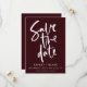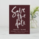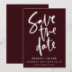 Burgundy- och White Modern Script-kort med enkel handskriven calligrafi Bröllop spara datum-kort Anpassa till din text så att den blir unik för dina