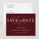 Burgundy Script Snyggt Handskriven Calligraphy Bröllop spara datum Announcement Postcard