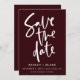 Burgundy- och White Modern Script-kort med enkel handskriven calligrafi Bröllop spara datum-kort Anpassa till din text så att den blir unik för dina