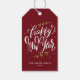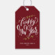 These customizable "Happy New Year" tags are designed with elegant modern calligraphy and a simple foliage wreath. Perfect for adding a personal touch to gifts or decorations. You can easily personalize these tags with names or messages to make your holiday gifts stand out. Ideal for parties, presents, or any New Year celebration.