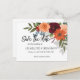 Enkel modern design med höstträdgårdsblommor i färgerna burgundy, orange och gröna blad med anpassningsbar text. Anpassa mallen med dina önskade bröllopsdetaljer, teckensnitt etc.