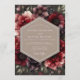 This romantic design evokes the drama of a classic still-life painting, perfect for a moody and artistic union. A lush bouquet of burgundy, crimson, and pale blush anemones emerges from a dark, shadowed background. Deep green foliage adds depth and contrast, creating a rich and opulent botanical arrangement with a timeless, elegant feel.