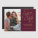 Sätt tonen för din stora dag med denna romantiska Spara datum-magnet, med elegant kalligrafi och en fullständig fotolayout i en rik burgunderpalett. Perfekt för höst-, formella eller vintematiska bröllop med en klassisk touch.