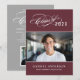 Fira din examen med denna eleganta fotograderingsinbjudan med flytande "Class of"-typografi och en fet 2026-rubrik i en rik burgunderfärg. Anpassa examenets namn, skola och festdetaljer för en ren, polerad look som håller bilden i centrum. Den matchande baksidan använder en klassisk grå layout för lättlästa evenemangsinformation och RSVP-information. Perfekt för examensfester och öppet hus-stil firande.