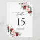 Det här anpassadet Bordsnummer Card är designat för att koordinera med vår samling av romska blommor och har vattenfärgsburguni och blommigtar med grönt löv och har ett svart snyggt med skript och serieteckensnitt. Om du vill göra avancerade ändringar går du till alternativet "Redigera med Design Verktyg" under Anpassa den här mallen.