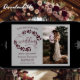 Det här vackra bröllop spara datum-kortet har en rustik burgundi och grått-design med modernt skript och en sprit av handmålade vattenfärgade löv, vindruvor eller löv. Det finns plats för ditt foto, parets placering i namn & bröllop. Elegant, snyggt och chic, det här kortet är ett underbart sätt att låta dina vänner och familj veta att spara datumet för din speciella dag.