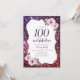 Burgundy lila glitter och blommigt 100-årsdagen inbjudningar