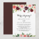 Detta burgundösa mottagningskort för elopement vår blommigt i lila är perfekt för ett enkelt postmeddelande i party. Den handmålade designen har grönt löv, bländande rosa, , lila, rött, vitt och burgudlande ro, peonier som är snyggt placerade i små söta buketter. OSA kort säljs separat.