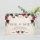 Akvarell burgunderröd marinrosa rustik landsbygd klassisk blomsterbryllup "save the date" kort mall med grön botanisk växtlighet och eucalyptusblad på trähyllning. Denna vackra och lätta att anpassa design kan matcha enkelt med din bröllopsfärg, stil och tema och är ett perfekt val för höst-, midsommar- eller vinterbröllop på landsbygden. Du kan hitta fler matchande designer i min butik eller kontakta mig om du behöver hjälp med designanpassning.