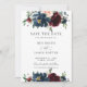 Detta stilrena bröllopskort för att spara datumet har en vacker akvarell i bröllopsrosa, marinblå och burgunderfärgade blommor. Designad för att matcha vår Elegant Blommor bröllopssamling. Anpassa den enkelt och snabbt med dina detaljer genom att trycka på knappen Anpassa för att ytterligare ändra stil och placering av texten. (c) The Happy Cat Studio