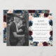 Markera ditt förlovningsfoto med detta boho-chica spara datum fotokort. Med en vacker akvarell burgundy, marinblå, rosa blommig och grönska lövverkskrans. Anpassa det enkelt och snabbt med dina detaljer, tryck bara på knappen anpassa för att ytterligare ändra och formatera stil och placering av texten.