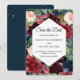 Skapa ett varaktigt intryck med detta romantiska "Save the Date"-kort med rika burgunderröda, marinblå, rosafärgade och elfenbensvita blommor i ett slående arrangemang i akvarellstil. Den vita hexagonala ramen framhäver vackert era bröllopsdetaljer medan den stämningsfulla blomsterbakgrunden frammanar en tidlös elegans. Perfekt för höst- eller vinterbröllop, rustika firanden eller botaniska teman. Helt anpassningsbart - lägg till era namn, datum och plats på några minuter.