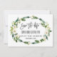 Unik och elegant kortdesign med vackra vita akvarellrosor, bukett med pioner, modern handskrift "spara datum", på vit bakgrund. Använd Anpassa verktyg för att lägga till din information, ändra typsnitt, bakgrundsfärg. För matchande artiklar, besök min Vita Blommiga Blooming Kollektion.