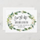 Unik och elegant kortdesign med vackra vita akvarellrosor, bukett med pioner, modern handskriven "spara datum", på en vit bakgrund. Använd Anpassa verktyg för att lägga till din information, ändra teckensnitt, bakgrundsfärg. För matchande artiklar, besök min Vita Blommiga Blommande Kollektion.