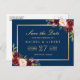 Burgundy Marsala Blommigt Guld Bröllop spara datum Vykort