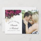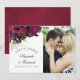 Vintage Marsala (burgundy) och blommor av guld shabby-chic bröllop tackar dig för ett fotokort med svarta och plommonaccenter.