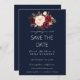 Spara datumet eller Ändra datumet. Två typer av kortdesign i en. Skicka den här burgundymarsala- och rosa-blommigten spara datumet eller ändra datumkortet. Texten kan ändras till en ändring av datumkortet. Om det behövs kan du lägga till en ny adress och en tidpunkt för bröllop eller händelsen. Dekorerad med en rosa-, vit-, svart-, burgundy- eller mörk-burgundy-bakgrund (mörk röd). Se vår inbjudan till blommigt för burgundy marsala och rosa för all färg. Det här kortet har en marin blå bakgrund.
