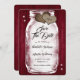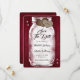 Rustiskt burgundi-bröllop spara datum-kort med ett murkök burk med ljus och brännhjärtor mot en lada-bakgrund som är försedd med ljus med skinkl. Anpassa enkelt den här söta, rustiska burgundi bröllop spara datum-onlinen. Matchningsartiklar som är tillgängliga för att komplettera detta burgunska bröllop spara datum.