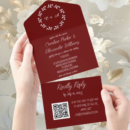 Burgundy Modern Initials Minimalist Wedding Presentaskar