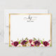 Elegant Modern Girly Chic Script Burgundy Blommigt Grönt Löv Botanical Anpassningsbar Personlig 2 Monogram Note-kort. Med två (2) monogram inledningsvis i ett snabbt, slitsat typsnitt med dekorationer, namn och en blommigt i botaniska trädgårdar med vattenfärg, burgundisk gränsmaron rosa ros med grönt löv arrangemang. Runt faux guld dubbla (2) linje ram gräns. Perfekt, söt feminin presentidé för företag, professionell eller tillfälle.