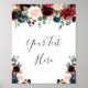 Burgundy Navy Blå Blush Vattenfärg Blommig Poster