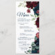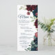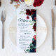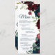 Burgundy & Navy Blåa blommor Wood Bröllop Menu Meny