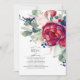 Den vackraste marinblått, burgundrött och blommigten inbjudningskort för möhippa