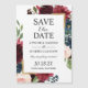 Burgundy Navy Blue Blommigt Save Date Magnetic Card