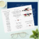 Burgundy Navy Blue Blommigt Tri+Fold Bröllopsprogr Reklamblad