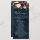 Bröllopsprogrammet Rustic Boho-kort för vattenfärg Burgundy Red Navy Blommigt. Perfekt för ett fallbröllop. Utformningen har en fantastisk bukett av burgundy/Marsala, persiko, marinblomma/ro med matchande löv. Hitta fler matchande utformningar och variationer i min "blissweddingpaperie"-butik. Och kontakta mig gärna om du vill ha anpassningsbar.
