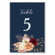 Följ gästerna till deras platser med elegantens burgundi och marint blått bordsnummer bröllop. Med vattenfärgen ro i burgundi, elfenben och persikor med pampasgräs och grön mot djup marin bakgrund, ger den här designen dig att roma på din mottagningsdekoration. Perfekt för höst- och vinterbröllop, repetitionsmiddagar eller årsdag firande. Matchande inbjudningar, menyer, program, spara datumet och välkomsttecken finns tillgängliga i vår samling för en mycket väl samordnad bröllop-svit.
