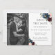 Burgundy Navy Blush Blommig Foto Spara Datum Inbjudningar
