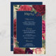 En elegant med rött, burgundärt och ro med marin övertäckning. Menyn bröllop är ett utmärkt val för sommaren bröllop med fullt blommor av rik färgad. De djupa skuggorna gör det också lämpligt för höst- och höstceremonier. Den här menyn har gott om utrymme för tre kurser. Lägg till de underrubriker som du föredrar och välj sedan menyalternativ.