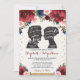 Denna vackra bröllopsinbjudan innehåller handmålad blommigt i burgundi, marin och elegant kombinerad med vintage silhouettes av Elizabeth Bennet och Darcy, två av de mest älskade och ikoniska tecknen i engelsk litteratur, från den romantiska romanen "Pride and Prejudice" skriven av Jane Austen. Varje silhuett bär romantiska citat från romanen, skriven på vismiskt brev. Du kan anpassa namn på silhuetterna med namnen av bruden och brudgummen. Bakgrunden färg i inbjudan är vit, men du kan välja en ny fyllning färg för att matcha den med ditt bröllop-tema. Använda fält om du vill lägga till information och klicka på knappen "Anpassa ytterligare" om du vill ordna om inslag om det behövs.