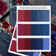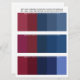 Tre burgundsjevelfärgade paletter i bröllop färg med ruby, garnet, merlot, marin, safir, kornrosblått på ett kort som du kan bära med dig skapar det enkelt att jämföra flödet och kontinuiteten i färger och färg när du väljer material och förnödenheter för bröllop.