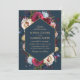 Burgundy Navy och Peach Blommigt Guld Ram Bröllop Inbjudningar