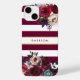 Anpassningsbar med telefonfodral i monogrammet personlig med ditt namn eller annan text. Det här trendiget har en vattenfärgad blommigt gräns i rustik höst färger på en burgundisk och vit strimlad bakgrund med faux guld-folie. Använda designen verktyg om du vill välja valfri bakgrund färg, ändra typsnitt och färger eller ladda upp egna foton för att skapa en typ av fodral-design.