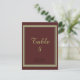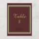 En klassisk elegants burgundbakgrund som accentueras av guld gräns på detta sittkort för bord. Guld. Anpassa genom att ändra nummer och lägga till i kundvagn och upprepa sedan för varje nummer.