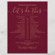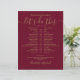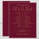 Denna enkla eleganta burgundy och guld bröllopsschema tidslinje kan anpassas med dina bröllopsdetaljer i modern typsnitt. Designad av Thisisnotme