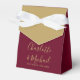Elegant burgundy och guld bröllopsbox med snyggt namnteckning skript namn och speciellt datum angivet i modern typografi. Du kan anpassa dig med ditt eget tackmeddelande under locket. Ett perfekt sätt att tacka gästerna! Designad av Thisisnotme©