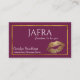 Elegant oberoende-rep Jafra-affärskortet i burgundi, med ett gyllene konturformat ram och grafik med ett gyllene glitter-läpptryck. Anpassa texten till kostym som ditt företag behöver.