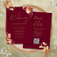 Burgundy och Guld QR-kod Höstbröllop Inbjudningar