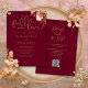 Burgundy och Guld Rustic Blommigt QR-koden Bröllop Inbjudningar