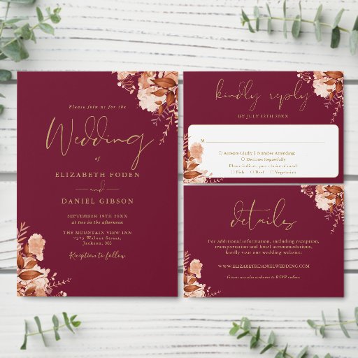 Rustic Burgundy And Gold Floral Fall Wedding SuiteDesignad av Thisisnotme Designs